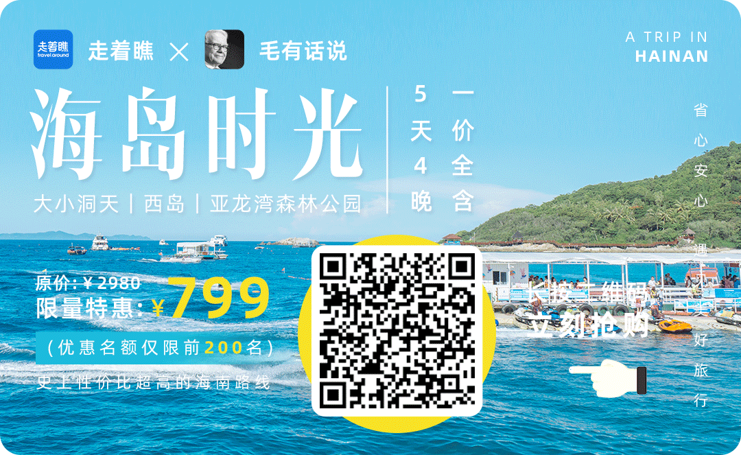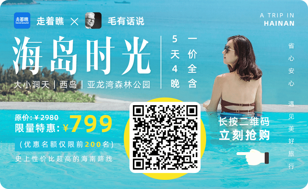 我觉得会有很多读者想要这样的福利,这次为大家争取到200个5天4晚的海南【海岛时光】名额,原价2980元,我们的读者可以享受限时优惠价799元。