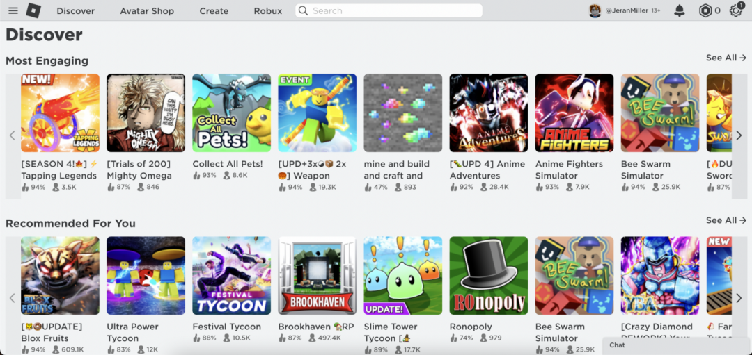 Roblox 上的摘要,显示可供多用户虚拟世界进入和玩耍的选项