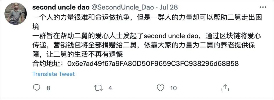 从一开始被人质疑视频拍摄内容存在疑点,作者信誓旦旦声称“每一个字都是真的”,背后是二舅所在的村镇干部承受了巨大压力,连央视都站出来督促查清问题。不过3天时间,二舅所在的河北某地就查实,二舅的残疾证90年就已办下来,二舅的残疾不是赤脚医生打针所致,而是小儿麻痹,视频作者也不是二舅的亲外甥。于是刚被捧上神坛不到一周的“二舅”,立马被无数网友骂到臭水沟,作者沉默,平台下架。但平心而论,这算不上翻车,整体事件框架和人物形象都是真实存在的,只是细节有一定出入,如果作者适时的站出来更正相关问题,依然不失为一部优秀的作品。其二,假“二舅”是真的彻底翻车,人都已经卷款跑路了。网上一时蹦出来的“二舅”很多,最出名的还是强蹭热度、打着区块链名义搞的“二舅币”(second uncle coin)。这个空气币存在了两天,就完成了130万美元的收割,多数人把血汗钱投进去连个水漂都没打,就被骗子洗劫一空,丢尽了二舅的脸!7月28日,“二舅”刚火了两天,“二舅币”便横空出世,发起人名为second uncle dao的团体,他们没有选择在国内顶风作案,而是在推特上宣传,随后再“出口转内销”坑骗中国人。打的旗号很能唬人,利用了网友对二舅的同情心,声称“用区块链传递爱心,募集善款帮助二舅,给二舅的养老提供保障,让二舅的生活没有遗憾”随后附上了“二舅币”的合约地址。众所周知,虚拟币交易去年就已被彻底赶出中国,所有交易平台的服务器都已迁往国外,国内但凡还在参与虚拟币交易的都是通过非常规渠道操作的赌徒。他们还没那么傻,之所以还去参与这场游戏,无外乎抱着这样的态度:肯定有人会信以为真,自己快进快出,就能割掉别人的韭菜。孰料还是太天真,操盘者在背后早已计划好了一切,“二舅币”上线交易不过两天,骗子们就收摊走人了,直接卷走了超过130万美元的财富,游戏的参与者几乎全军覆没。留下的只有暴跌99.7%近乎归零的空气币,自以为精明的赌徒们望着难以置信的K线图,久久都不敢相信自己的血汗钱就这么没了。现实就这么残酷,你想着比别人跑的快,就能避免被收割,岂不知当你踏入这个赌场的时候,就已经是他人收割的对象,连跑的机会都没有。这样的结果只能认栽,去公安局报案都大概率不会被立案的,更何况这是在国外搞起的,骗子卷款潜逃后便会人间蒸发,几乎难以追查。一场游戏一场梦,可悲的是虚拟币的游戏结束了,很多人的暴富梦还没醒!2022年以来,以比特币为首的币圈赌徒们,开始了疯狂内卷,这个往日被尊为“一币一别墅”的梦幻赌场,却一再上演大崩盘,动辄都是10%以上的瀑布。尤其是“币王”比特币,去年下半年开始的暴跌,至今都没有止住,从近7万美元一路跌破2万美元,70%的市值都蒸发殆尽。可面对一轮接一轮的财富大绞杀,却还是不断有人冲进去送人头,指望再搏一把,单车换豪车。哪怕是“币圈教主”马斯克都忍不住割肉,特斯拉在2万美元左右的价格抛售了75%的仓位,至少亏损了1/4,并随时可能全部抛掉认栽出局。更不用说,还有全球唯一将比特币作为法币的中美洲小国萨尔瓦多,总统亲自带领国民下场炒币,结果却是高位接盘,持续买入的数百枚比特币,一天的亏损就超过上百万美元。不夸张的说,这个任性的总统,为了贯彻自己的信念,已经将这个国家逼到了绝境,外汇紧张,财政告急,即将到期的数千万债务,都不一定能还的起。搞不好的话,萨尔瓦多也可能将成为全球第一个因比特币破产的国家。国家早已三令五申:比特币等虚拟货币的交易,就是纯属投机炒作,没有任何价值。银行封禁、微信支付宝叫停,都还是无法打消很多赌徒对“一币一别墅”的虚妄念想,他们不惜将钱转给私人,甚至翻墙到国外,也要把自己的血汗钱押注在这一场空中楼阁般的赌场里。国家在近两年时间里,将国内大大小小的虚拟币交易所全部赶出中国,禁止地方为虚拟币挖矿提供场所和便利,一大批国内知名的交易所要么关门大吉,要么将家当迁往国外。拆庙赶和尚,国家一方面是为了打醒那些装睡的人,另一方面是紧急叫停虚拟币挖矿对电力的严重浪费,有些地方的电力不足已经影响到了正常实体经济的发展。天下从来都没有免费的午餐,更没有纯粹的傻子,淹死的都是会游泳的!全文完,欢迎文末评论、点赞、分享。