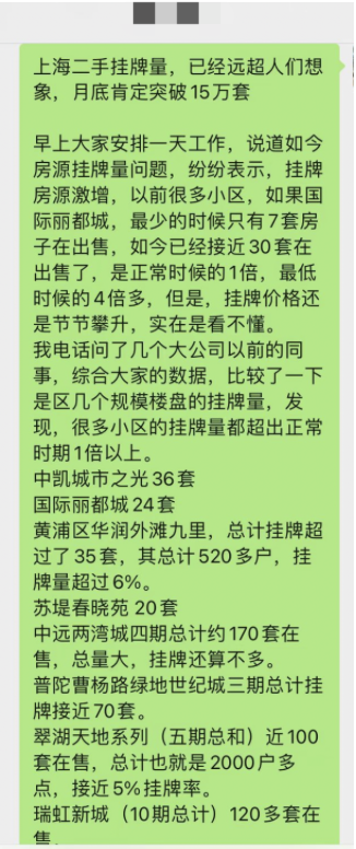 而且,这还只是其中某一个中介平台内网,如果是全网和各类小中介的的挂牌情况,应该还要更多。