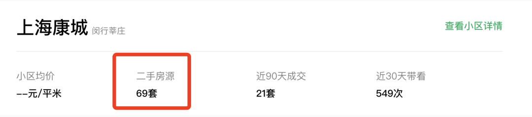 莘庄上海康城,目前在某中介内网上的挂牌数据也只有79套、在链家外网上挂牌量69套,而他本身是一个体量达到1万套的小区。