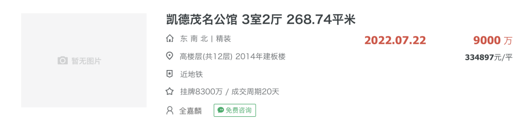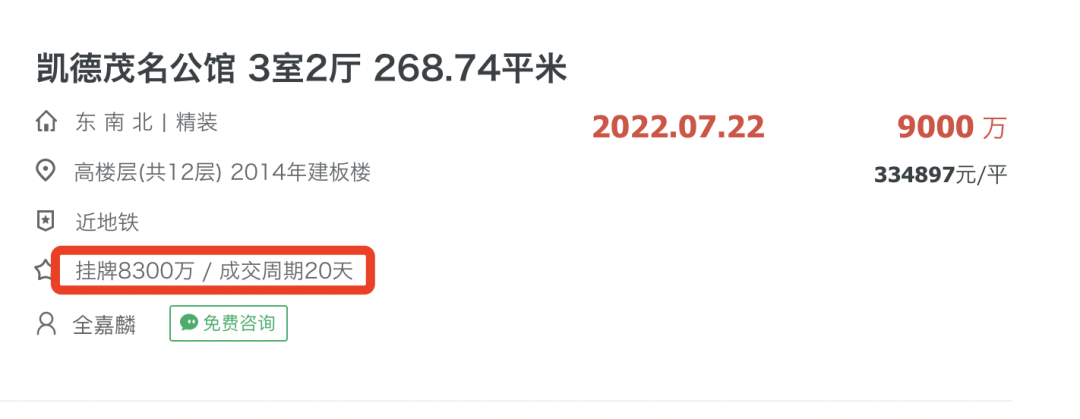 挂牌8300万,成交周期仅仅只有20天,最后成交价达到了9000万。