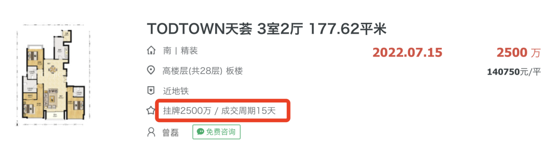 总价2500万的莘庄地铁房,在挂牌15天之内就成交了。