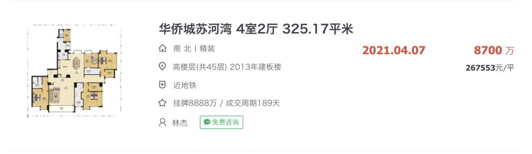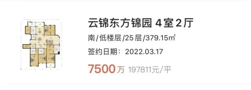 在成交的豪宅里,出现了不少火速成交,比如最近一套挂牌8000万的凯德茂名公馆。