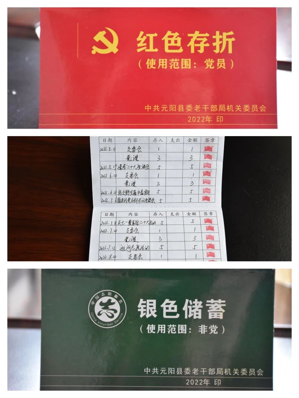 为调动离退休干部“发挥余热”积极性,元阳县委老干部局模拟银行储蓄存折制度,制定“储蓄细则”,按照县委老干部局为“总行”,各支部学习小组作为一个“支行”,为每一名党员“开户存钱”,各支部组织委员和学习小组组长为“柜员”,为离退休党员开办“红色存折”,非党离退休干部发放“银色储蓄”。通过活动积分存储、兑换的形式,来记录退休老干部、党员服务群众、争做先锋的过程,形成“奉献—积分—激励—奉献”的良性循环。