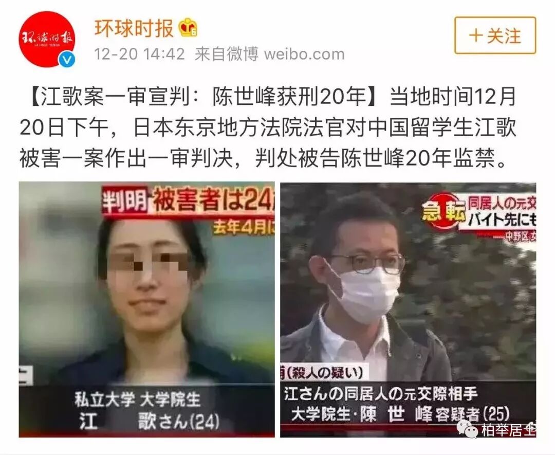 12月20日,江歌案终于宣判,陈世峰判刑20年。
