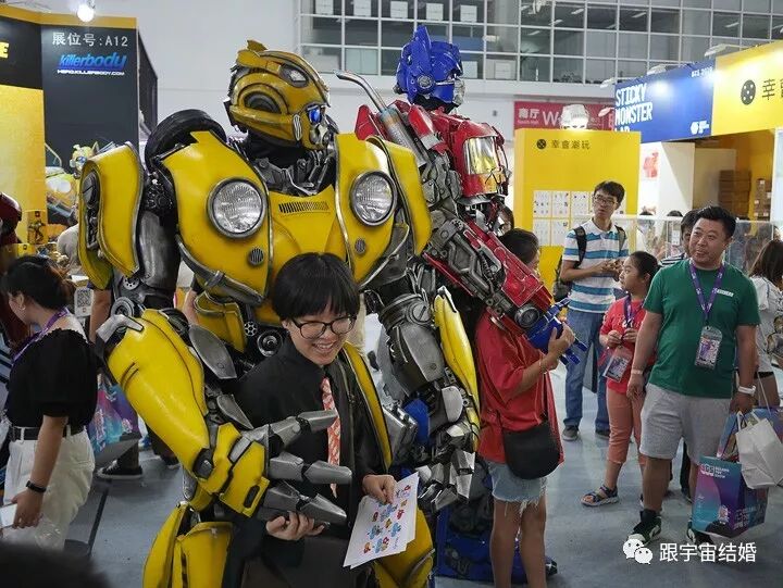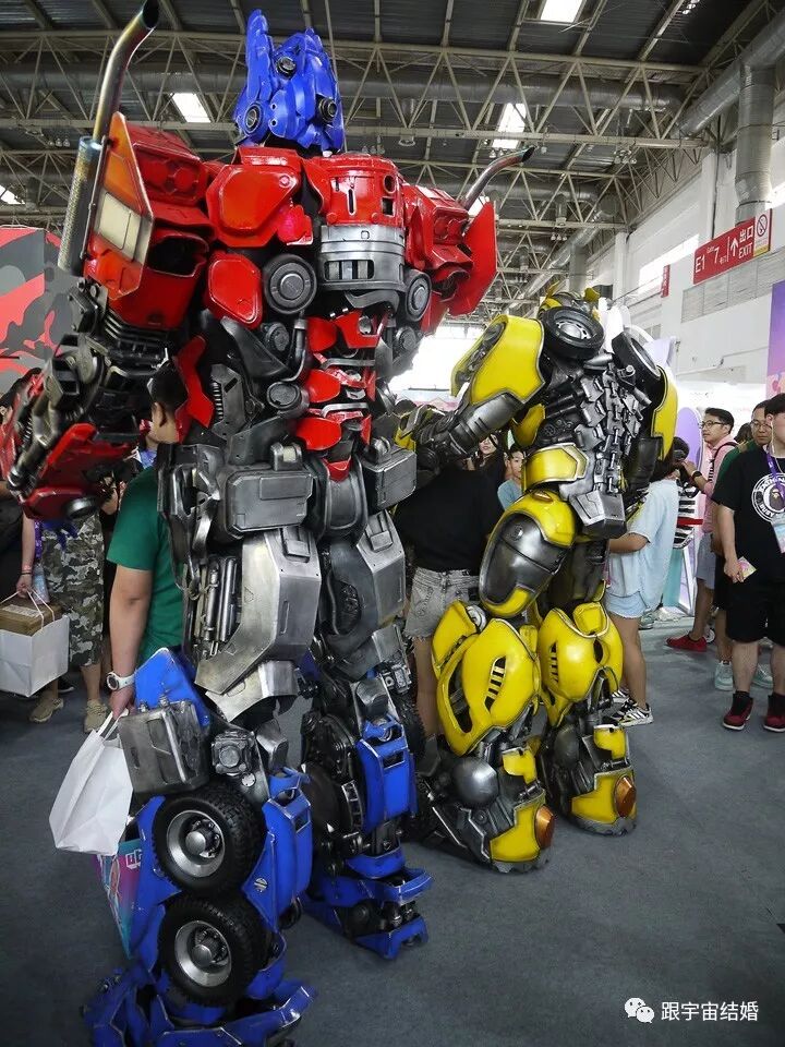 不夸张的说,无论物理世界还是网络世界上,这都是我见过的最牛的真人版变形金刚造型。做工质地不用多说,身高和可动性也都厉害,而且两位说话的声音也是实时处理过的机械音。注意这不是机器人,是真人穿着高级外壳实现的。我看网上也有其他视角的视频,已经火了。