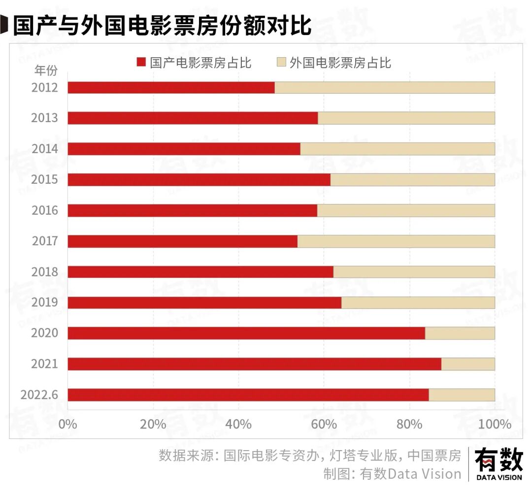 2021年,进口片的票房占比只剩下了17%。