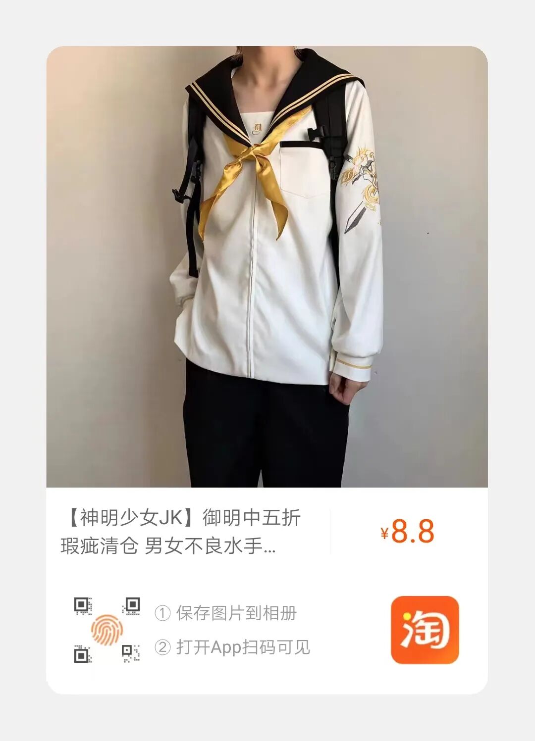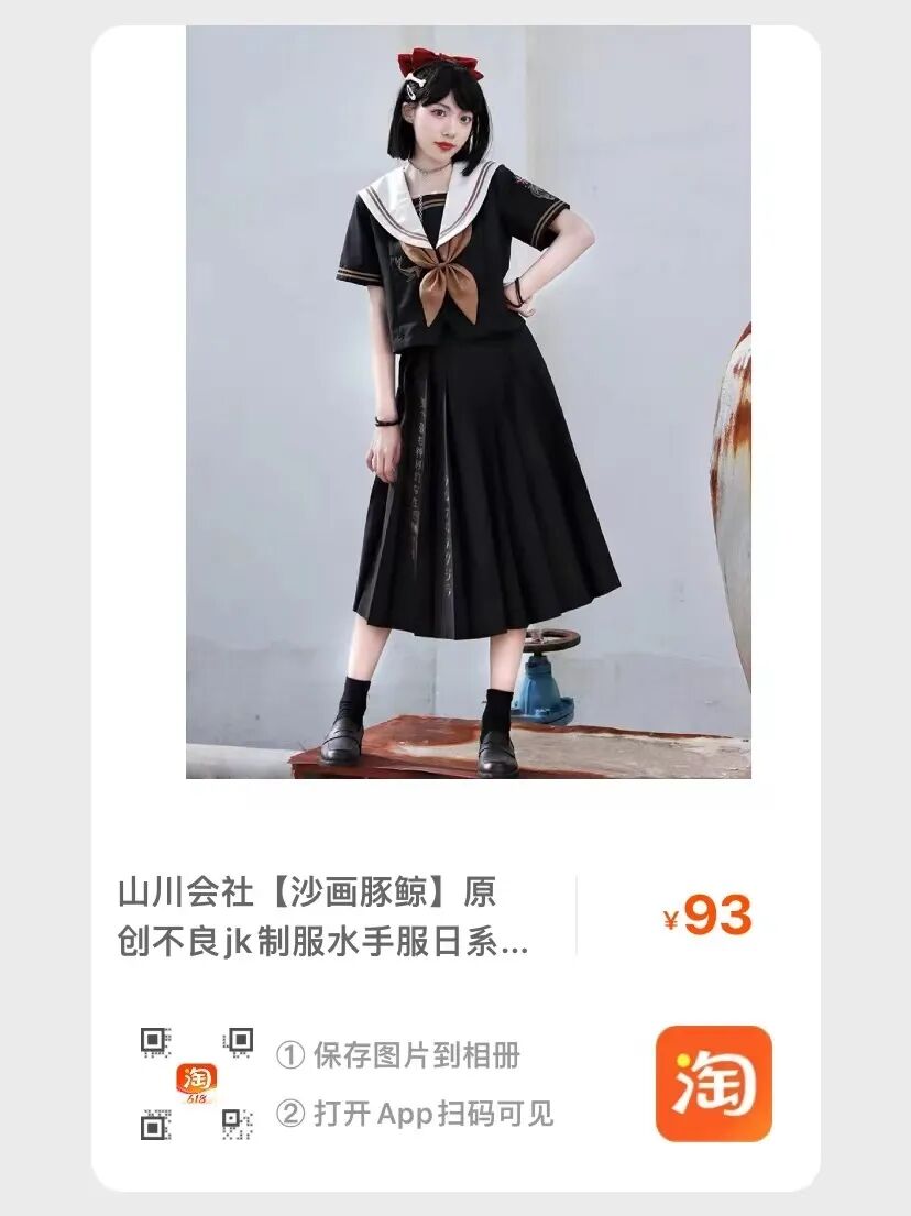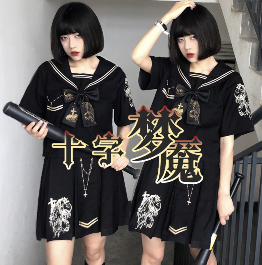 每款的定金都是50。上衣是双刺绣的不良水手服。裙子有纯色选项和黑灰色拼色选项。TR面料。