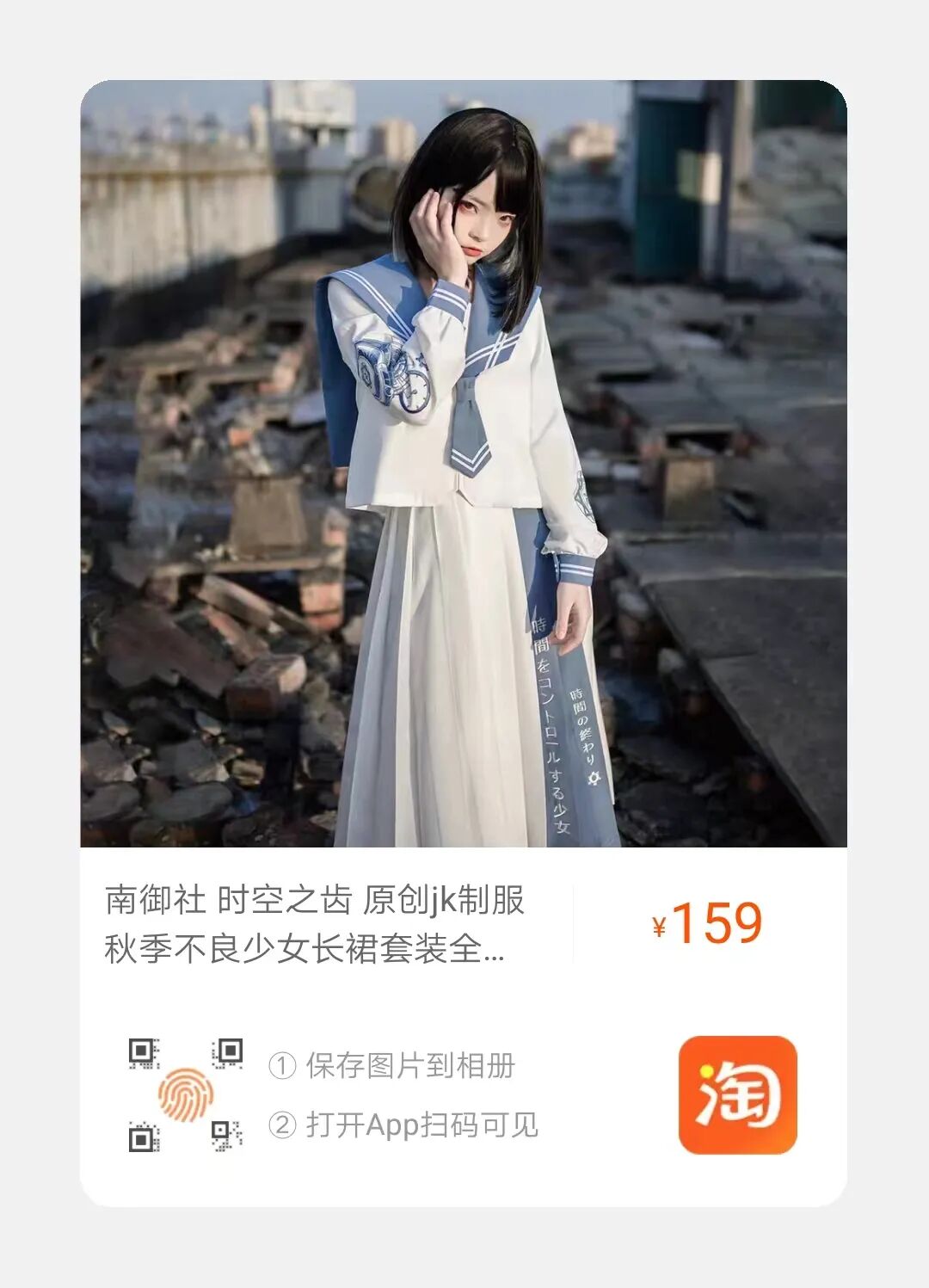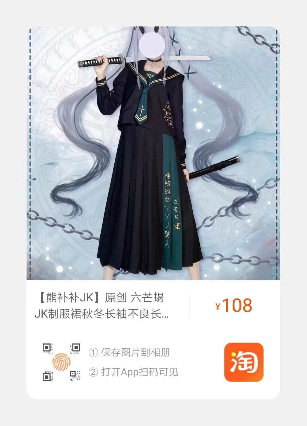 一套包括长裙+长袖+领带。面料为TR。有黑白两色。比起通常全黑的不良,这款的白蓝色好戳我,给人一种奶凶奶凶的感觉~