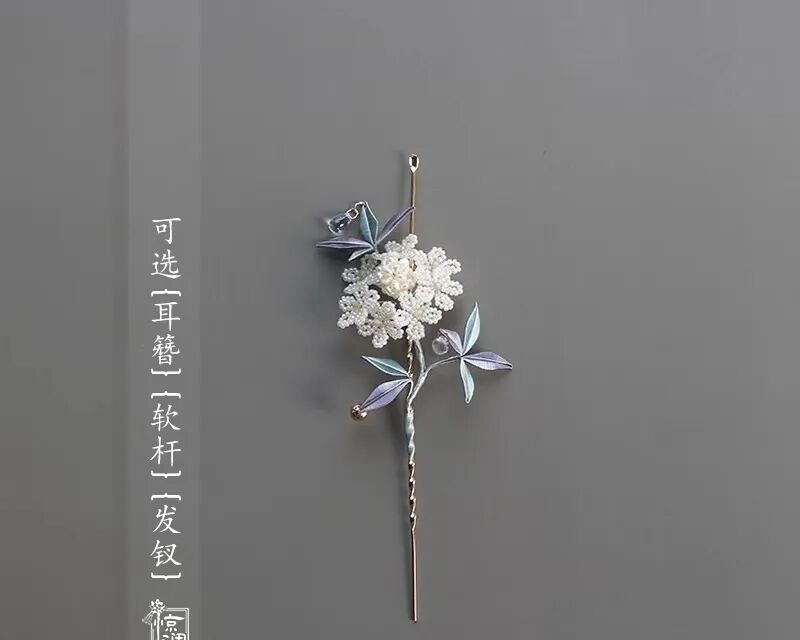 这款发簪有一点点小贵,因为又有缠花又有辑珠花,所以也是合理的,可以选择耳簪、软杆、发钗三种主体。