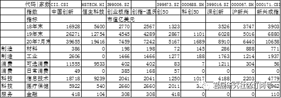 王维钢博士在《寻找表征中国创新经济的最优策略:研发引导的CII中国创新指数-大数据求是系列专题-君晟科技创新会议王维钢观点20200801》(原文链接)提出CII中国创新指数的观点。CII中国创新指数盖全球各市场中国创新上市公司,比创业板指和科创50指数更能全面表征中国科技创新经济。中国创新指数200个成分股2018年末、2019年末、2020年7月末市值分别为1.7、2.6、4.0万亿美元,在市值规模上显著大于包括恒生科技指数在内的其他七个指数,更能表征中国创新经济蓬勃发展的客观事实。