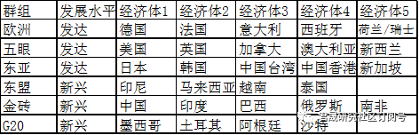 表1:全球主要经济体分组表