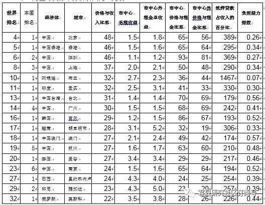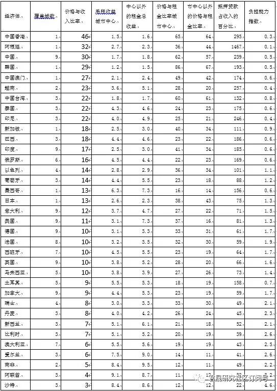 中国9个城市平均30、阿根廷32是G20大型经济体中房价收入比最高的两个经济体。韩国29、越南23、泰国22、印尼22新加坡18和港46澳27台22等东亚经济体是全球房价收入比最高的经济区域。