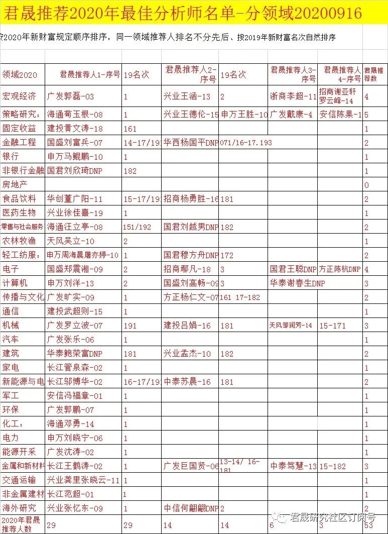 6同业公益-君晟推荐2020年最佳分析师名单-2020年9月1日~9月18日