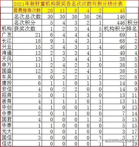 1、2016年10月10~18日,经征求九大研究机构负责人和部分君晟群委与投研总监意见,君晟研究社区2016年10月10日推出《君晟推荐新财富最佳首席名单20161010》,连续七次推荐全国九大投行研究所的31位金牌首席,10月18日发布《终极第7弹!君晟推荐新财富最佳首席名单20161018》。在《第14届新财富最佳分析师名单20161125》中,君晟研究社区有71位首席获奖,在33个行业或领域中有26个第一,19个第二,15个第三,8个第四,3个第五。2016年10月14日君晟推荐的31位首席中29位获奖,有14个第一,5个第二,6个第三,2个第四,2个第五。王博士私人推荐四位获1个第一,2个第三,1个第四。