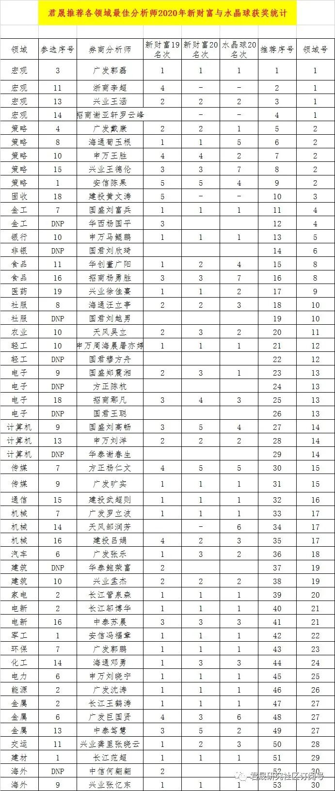 (1)君晟推荐2018年最佳分析师名单-分领域