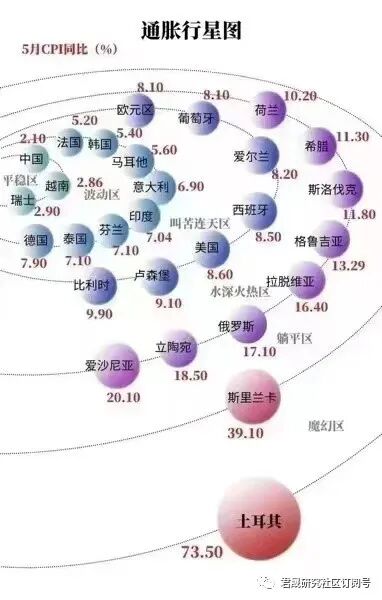 图 全球主要经济体2022年5月CPI通胀行星图