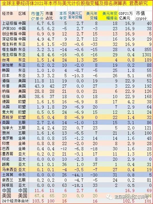 附录一:十、全球主要经济体32个股指2022年上半年股指本币变幅和美元计价变幅测算与排名分析:上半年沪深300本币变幅排名第7、美元计价变幅排名第10,恒生指数排名第5。2021年上半年证券化率中国从年初69%下降到62%,美国从294%下降到257%。2021年曾经取得本币变幅36%美元计价变幅37%雄踞第一的越南股指,2022年上半年本币变幅-20%美元计价变幅-22%仅排名第23。2021年曾经取得股指年变幅27%高居第三的美国纳指,2022年上半年变幅-29%仅排名本币变幅第31和美元计价变幅第31。
