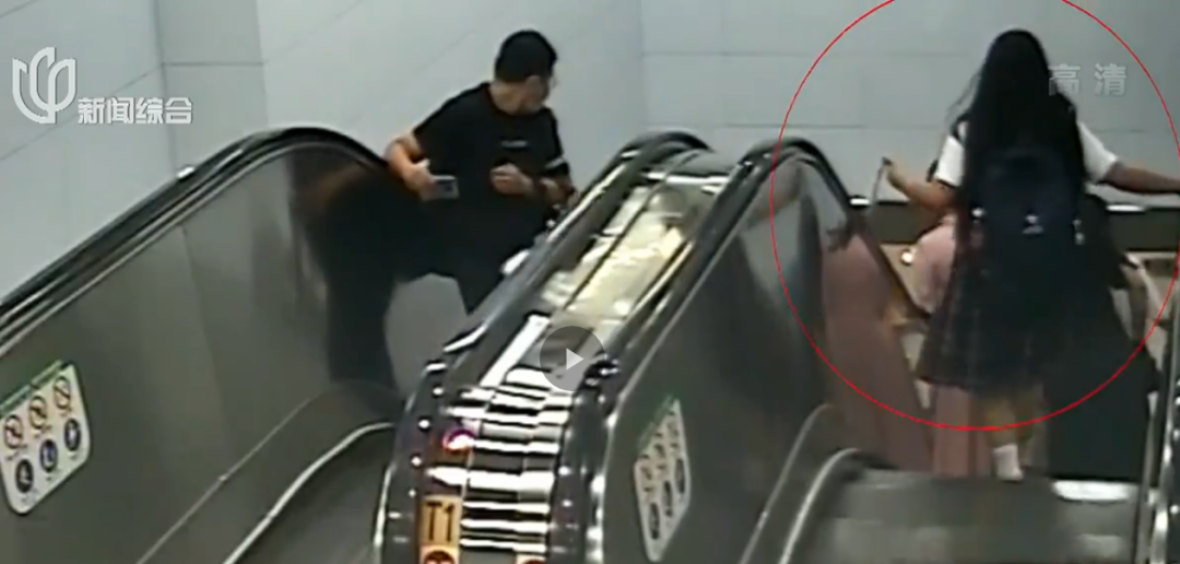 2020年9月,中学生小李带着拉杆箱,在曲阜路地铁站内乘坐自动扶梯时,不仅没有拉好扶手,也没有拉好自己的箱子,而是双手捧着手机低头在看……