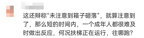 对此,法院认为,从行李箱滑落到砸到沈阿婆仅3秒时间,且拉杆箱的拉杆是拉起状态,滑落时占据了整个扶梯的横向空间,沈阿婆没时间、也没空间避让!