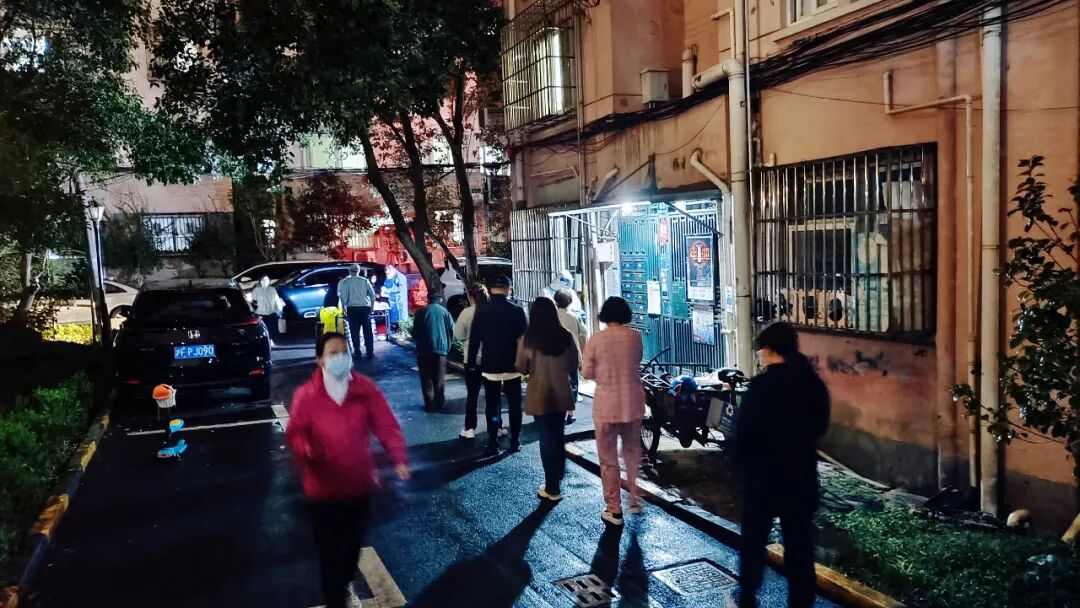 10月27日晚,徐汇长桥街道小区居民有序排队接受核酸检测。(图片来源:视觉中国)