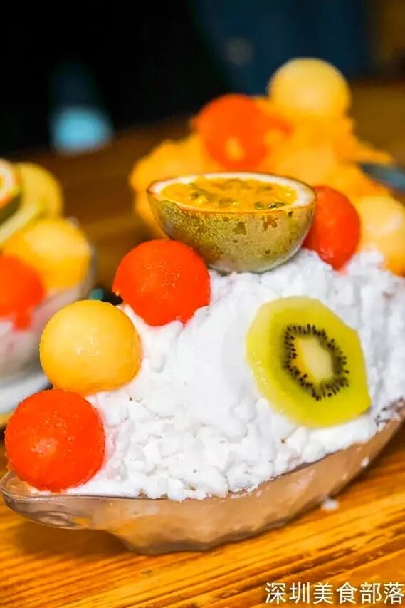 如果觉得光吃炒冰单调,上面还有果肉球解腻,建议混上一点百香果酱再吃哦,你会开启超冰界新世界的大门~