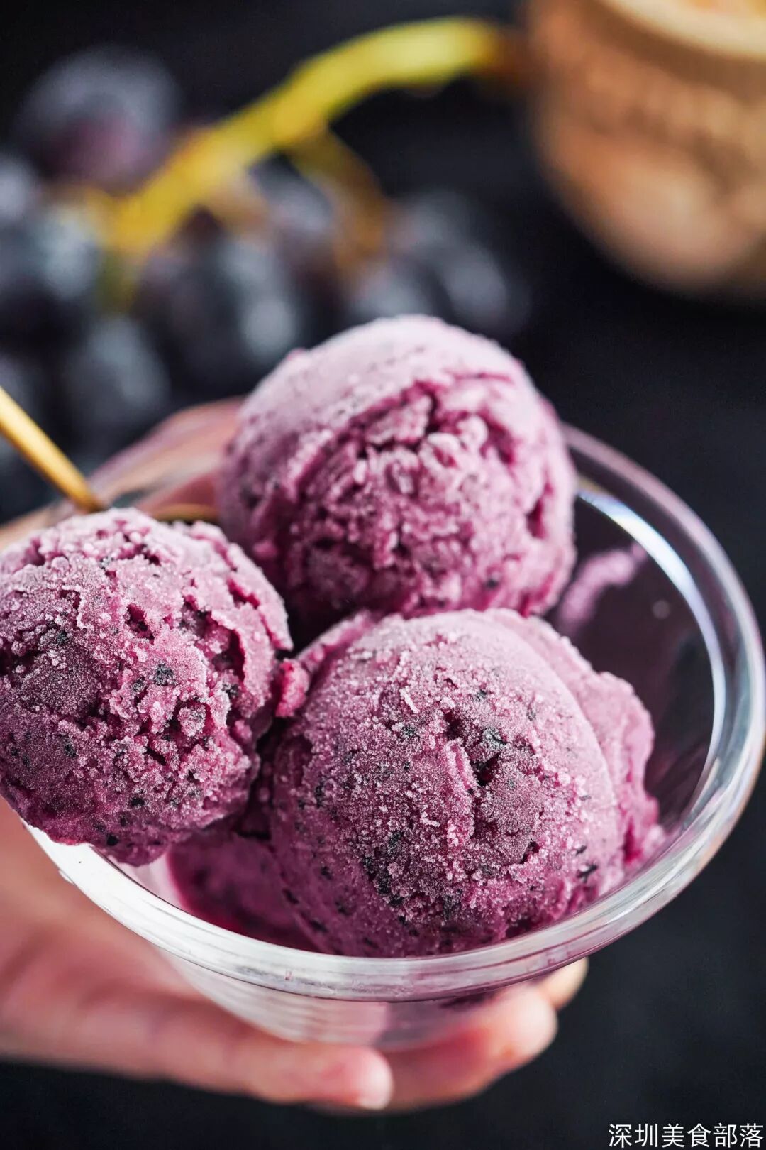 珍珠黑提炒冰没有什么花里胡俏的做法,用的是美国黑提,各个汁水饱满,洗净不去皮鲜榨,每一口都是新鲜的果肉,还能嚼到微酸的提子皮。