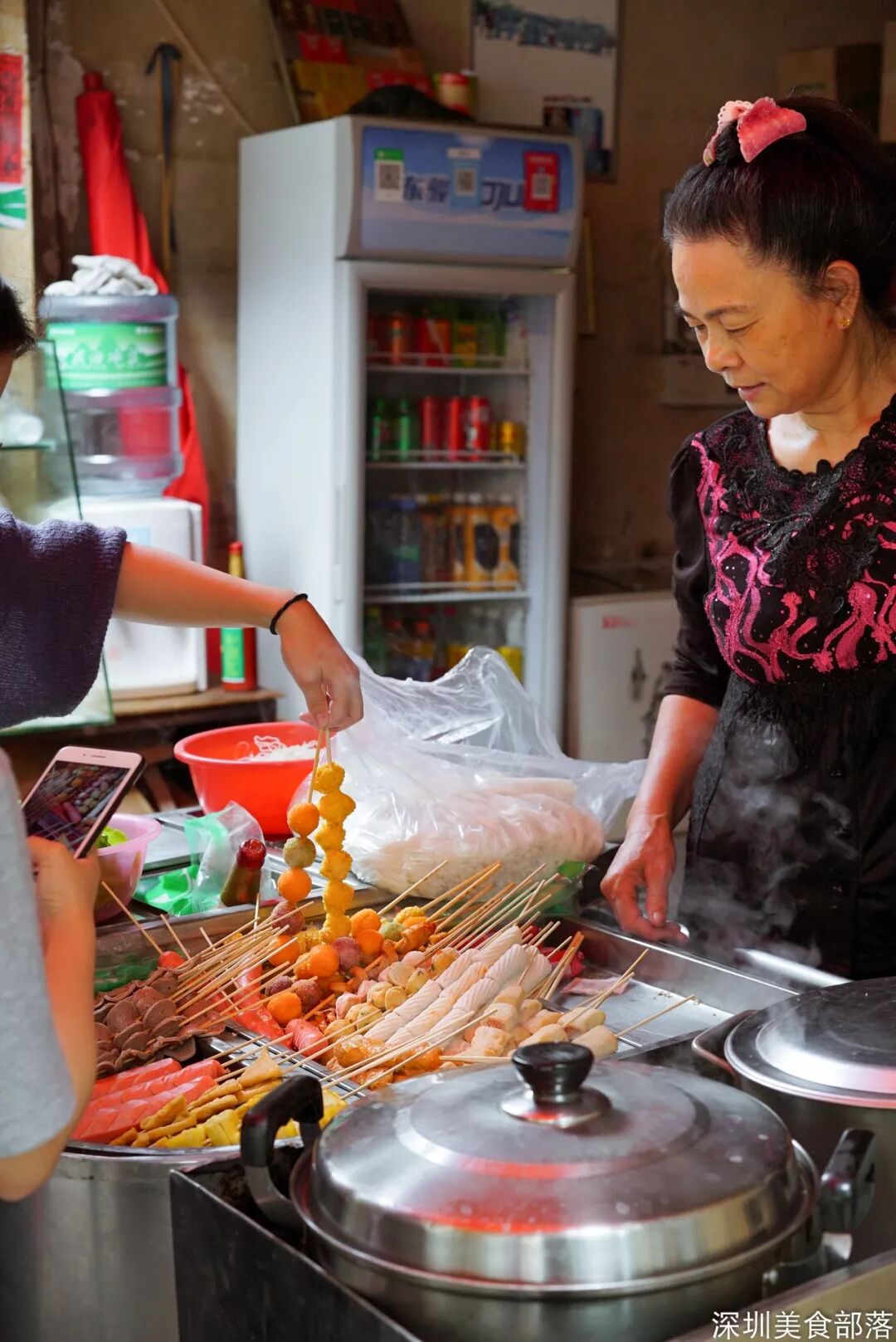 这家店就开在“西乡第二小学”旁边,所以街坊邻居都亲切地叫她“二小阿姨”。22年来,她一直在这里做炸串,几乎是看着学生们长大、谈恋爱、结婚生小孩。