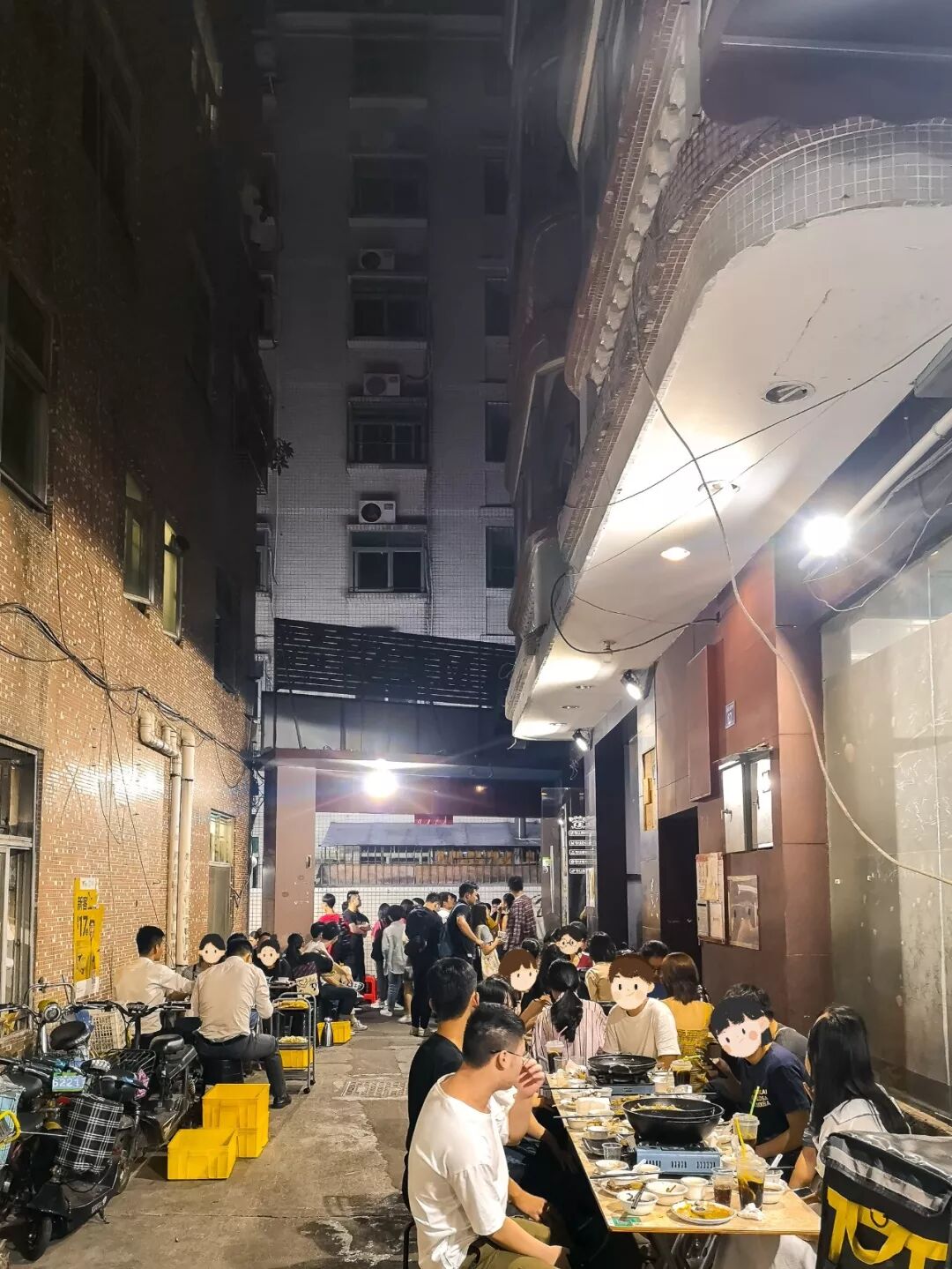 店里位置不多,一到饭点桌凳都摆到巷子里,有点像在村里吃宴席。
