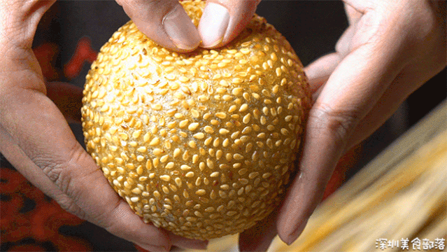 空心麻团外酥里糯,表皮厚实有嚼劲,嚼着觉得腮帮子hin爽!芝麻内陷完全不会腻,油香油香的~个头比碗都大,2个起售,点它!