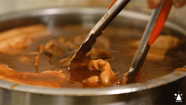 「戈饭」——潮汕小孩心中“过节”的标配,不同于传统做法,阿辉家的戈饭没有做成大锅饭,而是不厌其烦地一份份拌,这样拌出来的饭口感湿润,鲜香四溢! ② 猪肠 X 咸菜- 潮汕“拆不散”的老搭档 - “这不是我家每天早上餐桌上的'老伙计'吗?” 看到这一对cp,潮汕的朋友忍不住发言了。明明只是一道普通的家常菜,经过阿辉的手做出来格外有家乡的味道。