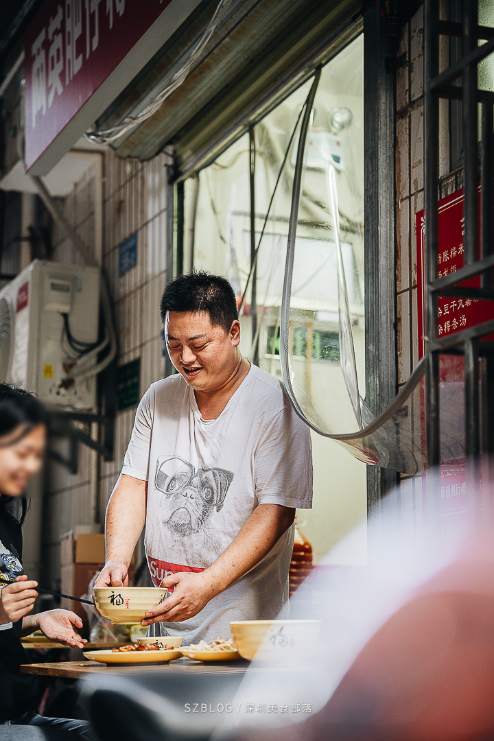 “每天大概做个150多单吧,中午和下午要雇3个钟点工洗菜打包,我和我老婆两个人忙不过来。”“中午和下午我们会关掉外卖平台,实在太累了,脚指头都不着地.....” 放眼小店,只有门口放置的两张方桌可供堂食,外卖平台其实才是小店的“主战场”。从白天到黑夜,排队的不是顾客,而是外卖小哥。 two | 一天三顿,都在这里吃 “其实做的都是家常菜,附近也不是没有别人做,只是刚好我家的比较合他们口味吧。”“好多‘胶己人’一天三顿都要在我这吃...” 「 从潮汕来的“猪肠”,是店里的招牌 」 / “一副生猪肠4、5斤,高压锅和配料一起压,压完就只剩一斤了,每天要卖好几副!” 阿辉家卖的最好的是猪肠!每一副猪肠都是托汕头的家人采办的,新鲜的猪肠清理好再由生鲜车托运过来,经过处理后的猪肠,没有一丁点膻味。 关于“猪肠”的CP们!!▼▼ ① 猪肠 X 戈饭- “肥仔”美食店招牌 - 「猪肠戈饭」是阿辉家的招牌!有人一天要吃三次,也有人因为外卖不送达专门跨区过来吃,光是这份戈饭,阿辉每天就得拌上几十次! “很多人以前不吃猪肠的,来我家吃过以后都说好吃!” “阿辉,什么时候颠勺啊?什么时候有火喷出来啊?” “...那是炒饭” //