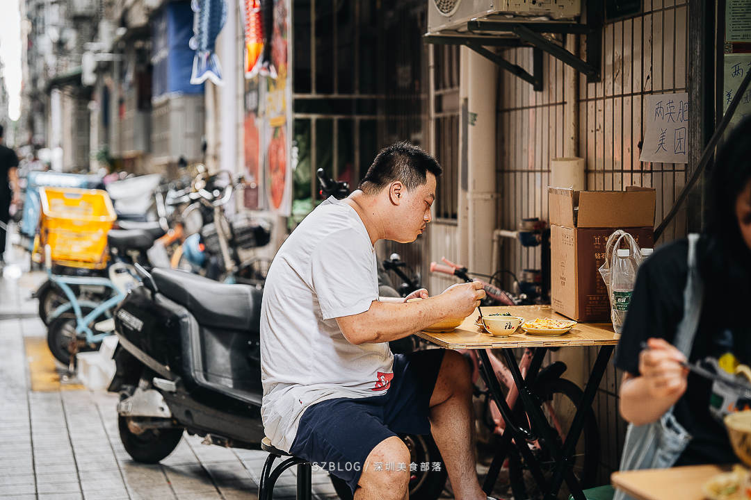 绕了几圈,终于看到了,这家约摸着只有10+㎡的小店。老板阿辉正在店内和妻子忙碌着,哦对,老板就是招牌上的“肥仔”。 one | 只有两张桌子,月售近五千单 /