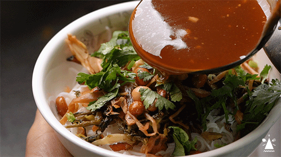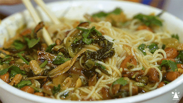 听李姐讲,店里的粉都是从海南运过来的,这样做的粉口感才地道。海南细粉相比较于其他粉,更容易挂汁,吃起来爽滑,吸溜一口太满足了。卤肉、鱿鱼丝、酸笋、酸菜,李姐舀起料来十分大手笔,配料们铺上满满一层,需要用力拨开才能看到下面的粉。