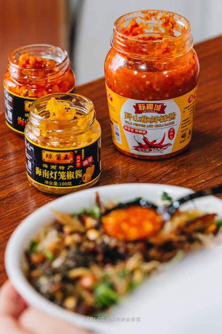 嗦粉不拌酱,味道少一半。店里有灯笼椒、野山椒、老板自己拌的酱三种选择,只不过这辣椒酱广东人不要轻易尝试,连我这湖南妹子都被辣哭了。