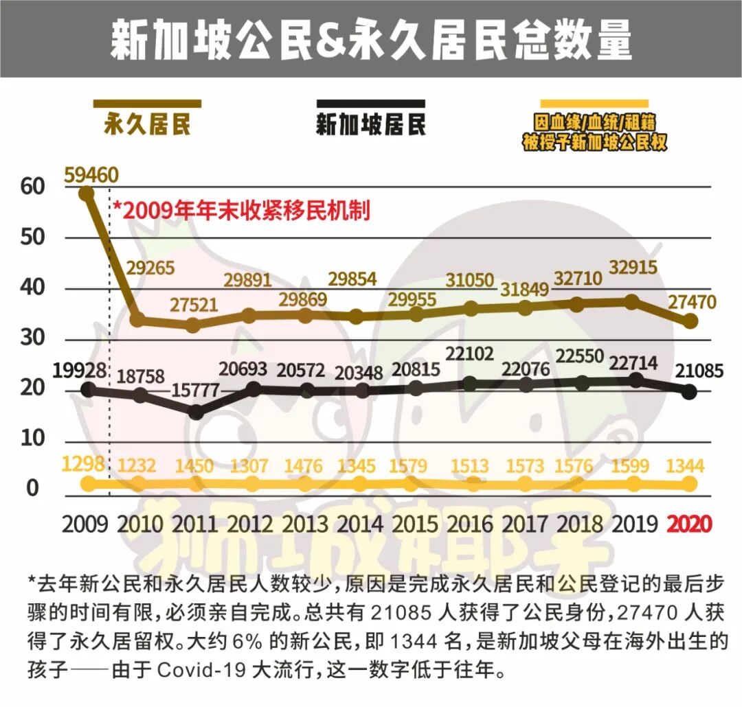 这意味着因为新冠疫情,有一部分夫妇推迟了自己的怀孕规划。这种情况同样出现在美国、日本、意大利等其他发达国家中。去年新加坡新增的的PR和公民数都有所下降,下降的可能性原因之一是申请步骤需本人到场及时间有限导致的。2020年,新加坡新增PR数为27470人,新增公民数为21085人,新增新加坡公民海外出生的婴儿为1344人。2019年的时候,新加坡新增PR数为32915人,新增公民数为22714人,新增新加坡公民海外出生的婴儿为1599人。