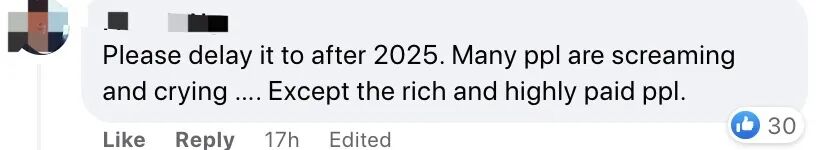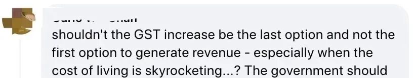 “到处都在涨价,对我们来说都是负担。不确定公布的回扣或补贴是不是会有帮助...不管怎么样,一切都安排好了。”“不然还是推到2025年吧。很多人都受影响,除了那些高薪人群。”“调高消费税也会导致那些年长人士的生活开支增加,但这次调高又是为了年长人士的医疗保健?”