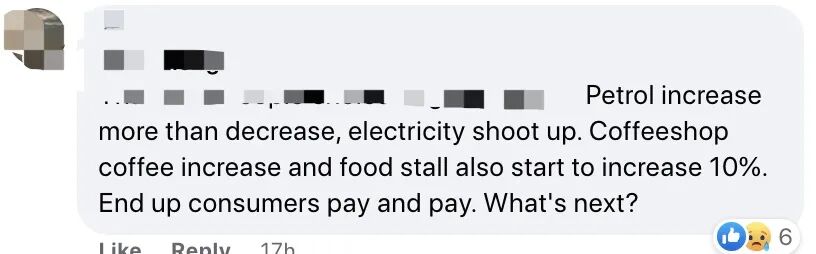“油价涨,电费涨,咖啡店咖啡涨,食阁饭钱涨,现在又要调高消费税,每次都是消费者来买单,下一次又会是什么?”