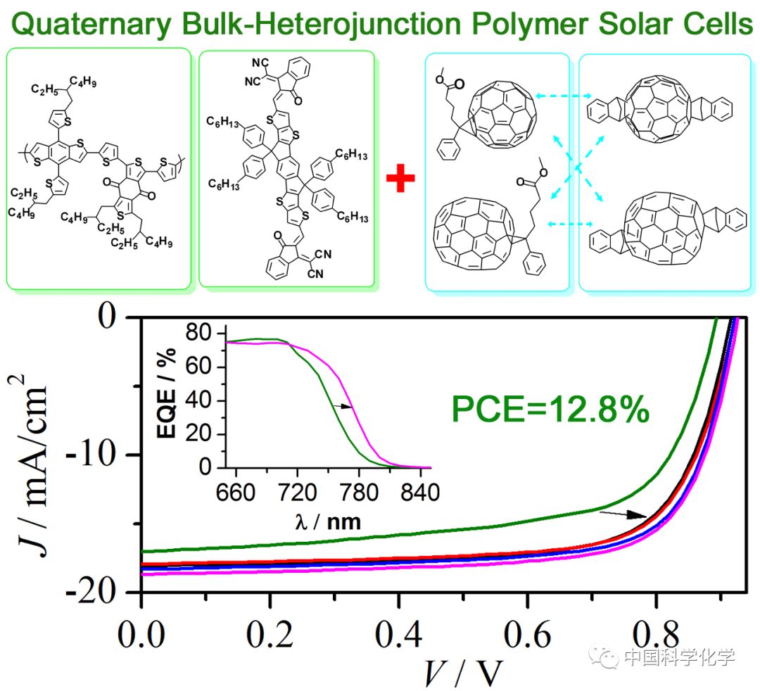 High-efficiency quaternary polymer solar cells enabled with binary fullerene additives to reduce nonfullerene acceptor optical band gap and improve carriers transport