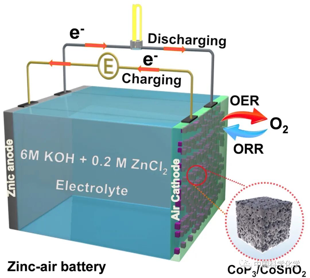 Porous phosphorus-rich CoP3/CoSnO2 hybrid nanocubes for high-performance Zn-air batteries