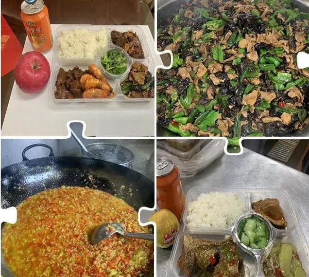 为了让“大白”吃到热乎餐食,配餐公司及时根据医护人员进方仓的时间点,灵活制定并调整点位送餐时间,尽可能排出最优方案。由于点位送餐提前至6点、10点,为保证医护人员准时就餐,每日凌晨2点不到配餐就忙活开了,精心烹饪、备齐早点、一刻不停、打包分装,再由专人送往酒店,保证6点爱心早餐到位,紧接着9点炒菜出锅.....满载着盒饭的保温餐车精准计时,确保10点送到点位。目前每日每餐为云南医护团队及酒店服务人员保供961份。