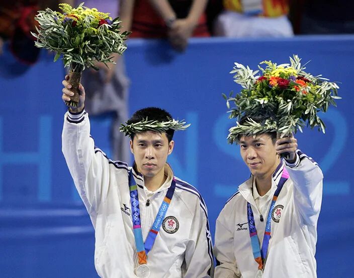 2004年雅典奥运,高礼泽(左)和李静获得乒乓球男双银牌