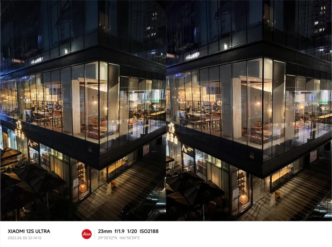 也就是说,小米12S Ultra在普通模式下的直出样张直接干掉了iPhone 13 Pro的夜景模式!并且由于没有了夜景算法“干扰”,12S Ultra的夜景画面更加自然通透,也更符合了肉眼的实际观感。是的,时代变了,小米比iPhone更真实了。