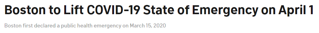 波士顿卫生委员会在本周三,共同投票决定,在4月1日解除公共卫生紧急状态声明。