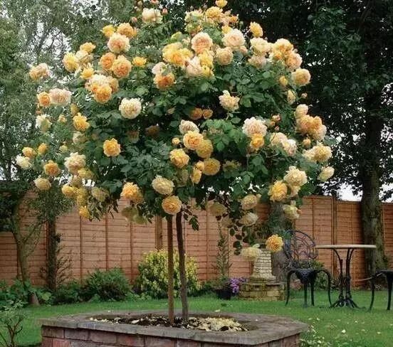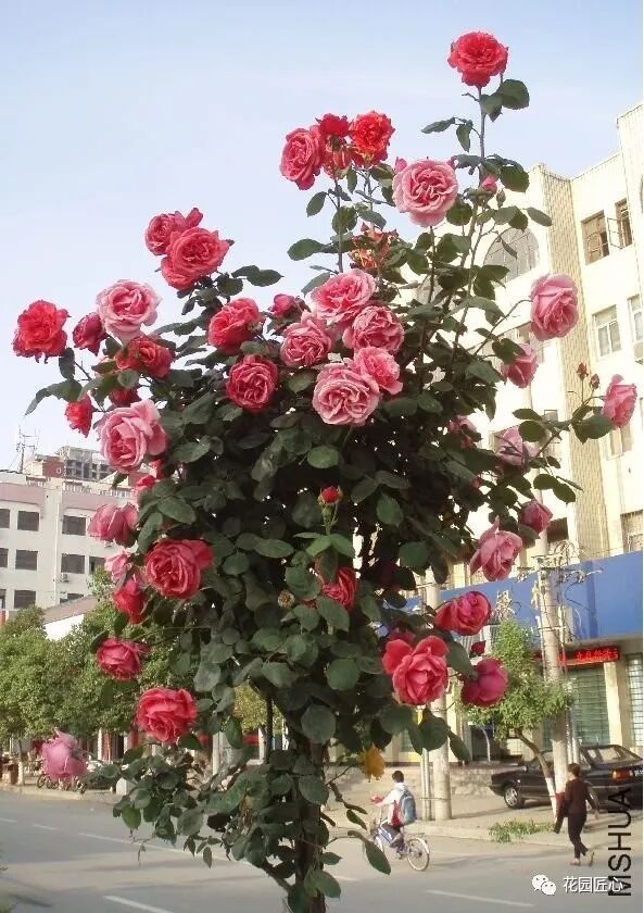 月季树除了可以做行道树外,还可以在草坪上栽植,突出效果,做为盆景观赏效果也奇佳。在环城行道树、公园、风景区、小区、私家庭院等绿地,树状月季都能起到画龙点睛的美化功效。