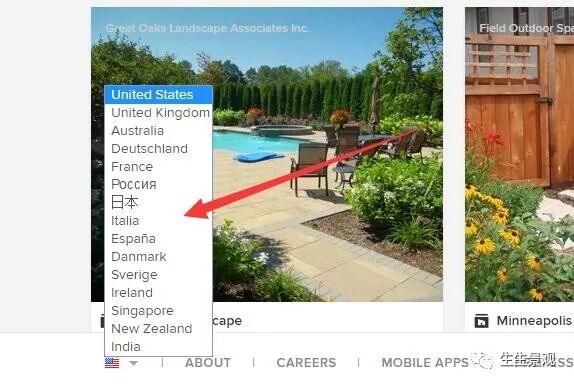 在主页最下方,有小国旗的地方,点击倒三角,就可以看到来自很多国家的分类,你可以根据自己的需求,对应做出选择,比如想看日式庭院景观,那就点击日本,就行啦。