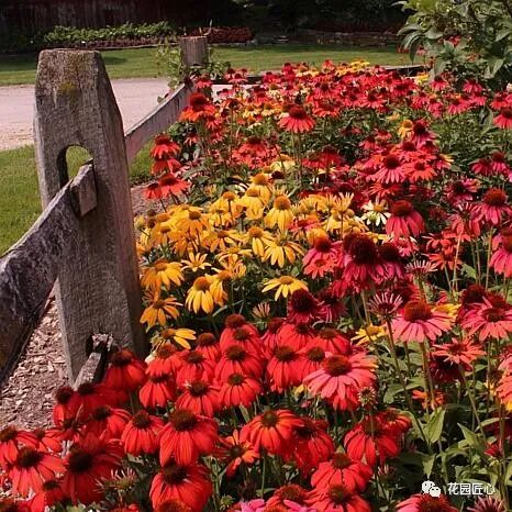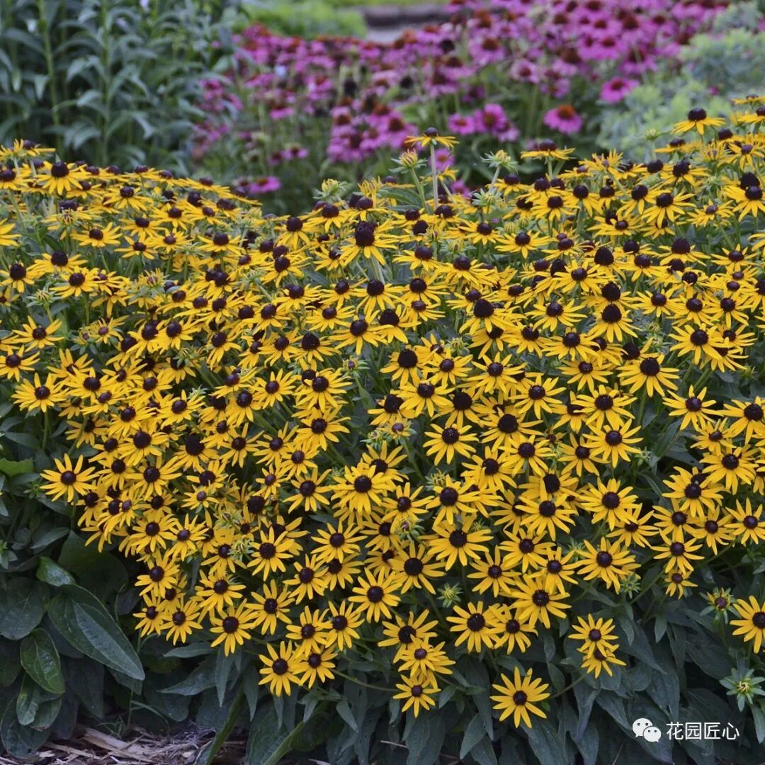 宿根金鸡菊、紫松果菊、分药花在夏季开花。