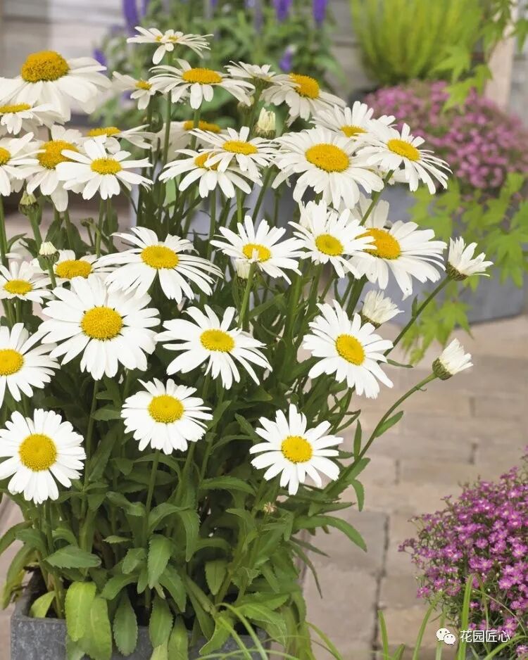 花境里最常见到的植物便是洁白素雅的大滨菊,能营造出浓烈的田园风情,是简洁、自然、唯美的代表。