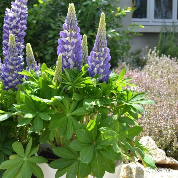 羽扇豆植株错落有序、叶形优美,花序硕大,极为雅致。羽扇豆与毛地黄、大花飞燕草等搭配形成的花境,深受花友喜爱。